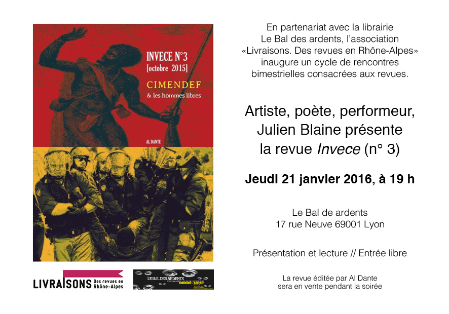 jeudi 21 janvier, 19h, à la librairie Le Bal des Ardents - 17, rue Neuve, [...]