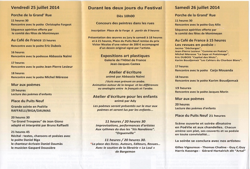 1er festival de poésie, de la chanson et des arts du Haut Var et du Verdon à Montmeyan, les vendredi 25 et samedi 26 juillet 2014…